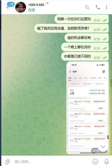 各位玩家请注意避雷吃相太难看,昨天晚上在平台搜索新币娱乐之前听朋友说还可以然后就注册试了一下,然后开始游戏然后也输钱了,然后继续充值玩,玩着玩着账号突然被冻结了,我就去咨询客服我说为什么账号会被封禁,客服的回复是系统检测到账号异常,系统自动禁用的他也没办法解开,然后我就简单的问一句我输钱了想继续玩就说我账户异常,然后就一直没有回复我,